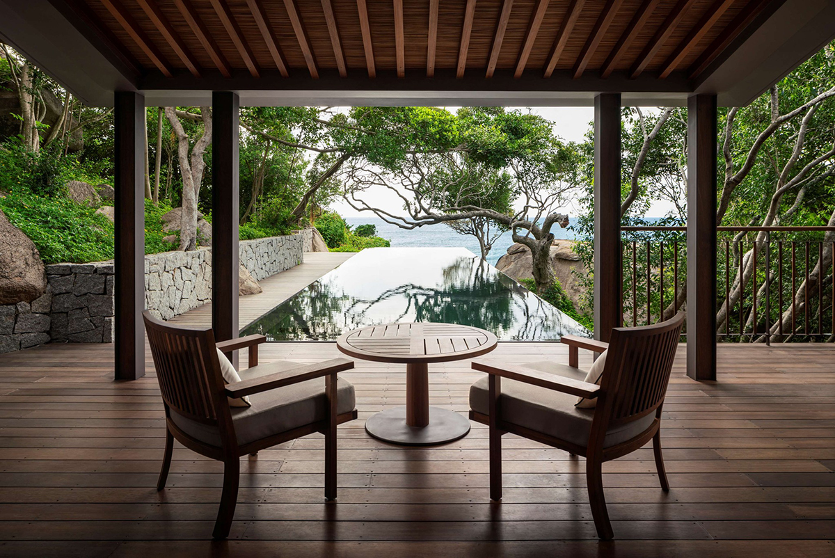 Tại đây bạn có nhiều không gian ngắm cảnh, thiền định và thư giãn. Amanoi cũng gợi ý du khách nên ở đây khoảng 3 đêm để cảm nhận rõ nhất sự bình yên và làm mới lại tâm hồn. Các phòng có hiên tắm nắng, nhìn ra biển hoặc núi. Biệt thự rộng nhất có 5 phòng ngủ và hồ bơi vô cực lớn. Một đêm nghỉ tại đây có giá từ 25 triệu đồng. Ảnh: Khu nghỉ dưỡng