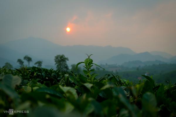 Ánh hoàng hôn phủ lên màu xanh của lá chè, tạo tương phản màu sắc sống động - Ảnh: Trung NghĩaMỹ Thuận chào đón du khách với những đồi chè xanh ngát, nơi có những cô gái miền trung du thấp thoáng trên nương, tay thoăn thoắt hái búp chè. Trên những ngọn đồi dốc có phần thẳng đứng, du khách bám theo nhau để lên tới đỉnh. Những đồi chè tại xã Mỹ Thuận được bao bọc bởi núi sông, xung quanh cảnh vật vẫn còn rất hoang sơ. Trên đường lên đồi chè, du khách còn có thể bắt gặp người dân chăn trâu trở về, liên tục chào hỏi du khách, mang đậm không khí làng quê miền Bắc yên bình. Sau khi đặt chân lên đỉnh, không khí trong lành, khoan khoái khiến bất kỳ ai cũng có thể cảm nhận được sự an yên, nhẹ nhàng. Mặt trời buổi hoàng hôn đỏ rực, trải ánh nắng lên màu xanh của những lá chè, tạo ra bức tranh tương phản màu sắc sống động, hùng vỹ. Đến đây, du khách tha hồ ghi lại những tấm hình đồi chè trung du ngút tầm mắt.