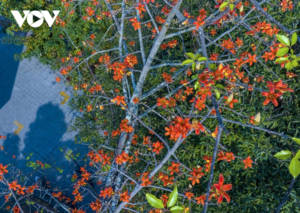Cây gạo tại khu vực cầu Dã Viên nở rộ.