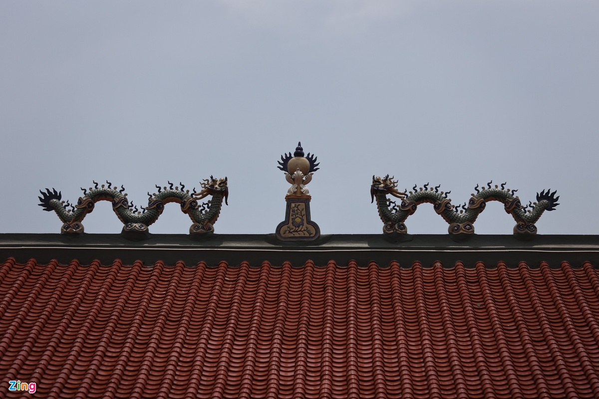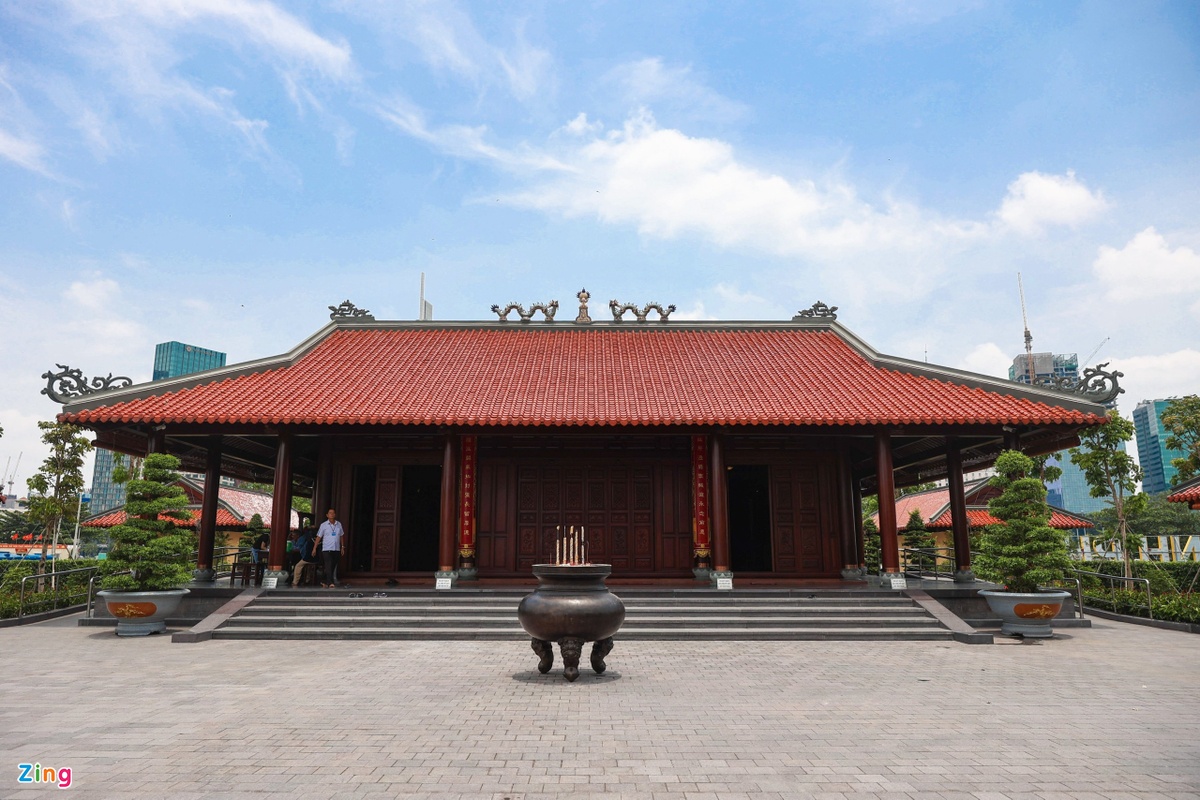 Từ cổng đình được xây dựng theo lối tam quan truyền thống với hai tầng mái, mọi người có thể nhìn thấy các công trình biểu tượng của TP.HCM thấp thoáng đằng sau như tòa nhà Bitexco, công viên Bến Bạch Đằng...