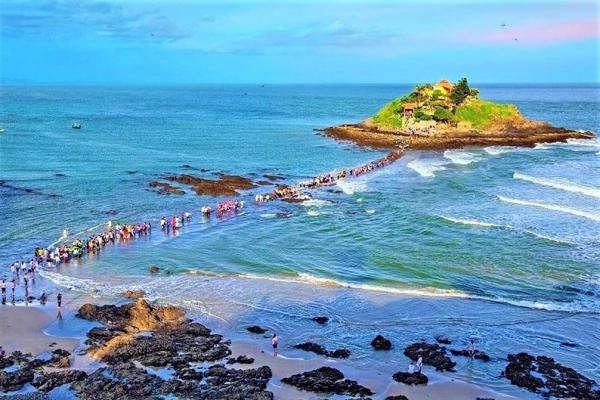 Đặc biệt trong 2 ngày 15, 16 âm lịch hàng tháng, nước biển rút sâu nhất nên du khách tới đây vào thời điểm này sẽ có cơ hội trải nghiệm tuyệt vời khi đi bộ qua con đường gập ghềnh nhiều sỏi đá để đến được miếu Hòn Bà. Tuy nhiên, du khách cần lựa chọn giày dép phù hợp để thuận tiện di chuyển do con đường này khá trơn trượt, gập ghềnh.