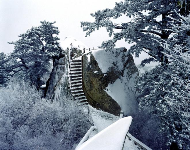 Trong tiểu thuyết “Tiếu ngạo giang hồ”, phái Hoa sơn có bản doanh nằm trên dãy Hoa Sơn, nổi danh trên võ lâm với 2 chiêu thức là Hoa Sơn kiếm pháp và Tử Hà thần công. Ảnh: ChinaImage.