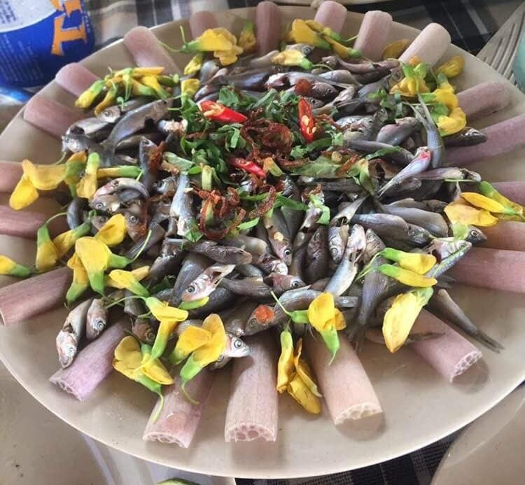 Bông điên điển ngon nhất khi được nấu canh chua (hay lẩu) với cá linh đầu mùa. Hoặc xào với tép đồng, đổ bánh xèo hay chỉ đơn giản là xào với hành tỏi cũng đủ một bữa cơm ngon. Nếu về vùng Châu Đốc, An Giang, nơi lũ đến sớm nhất ở miền Tây, du khách còn được thưởng thức món bún cá lóc rau nhút bông điên điển nổi tiếng (ảnh: HUỆ MẪN).