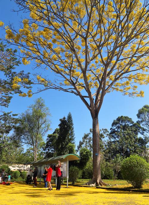 Dưới gốc là những thảm hoa vàng khiến bất cứ ai đi qua cũng bị níu chân.