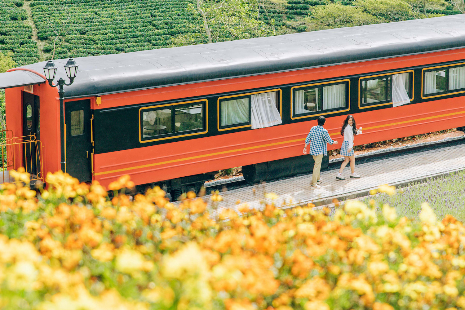 Đến đây vào ngày trời âm u, Nguyên và Hân có một bộ ảnh kỷ niệm lãng mạn. Ảnh: Viên Diệu PhátViên Diệu Phát, 32 tuổi, một nhiếp ảnh gia ở TP HCM, cho hay đã thực hiện một bộ ảnh tại đây vào cuối tháng 5. Anh biết đến đoàn tàu ở đồi chè do có nhiều người chụp ảnh và đăng tải trên các hội nhóm du lịch. Ở đây chưa hoàn thiện song anh ấn tượng với khung cảnh. Đoàn tàu làm bằng toa thật nên không có cảm giác giả, đặc biệt nằm giữa đồi nên phía xa là màu xanh mướt của cỏ cây, trụ điện gió nên đậm chất nghệ thuật. "Khi khách chụp ảnh cặp đôi ở đây sẽ rất mộng mơ, giống như một bộ phim lãng mạn. Sau này đồi hoa phủ kín lên sẽ đẹp mắt", Phát nói.