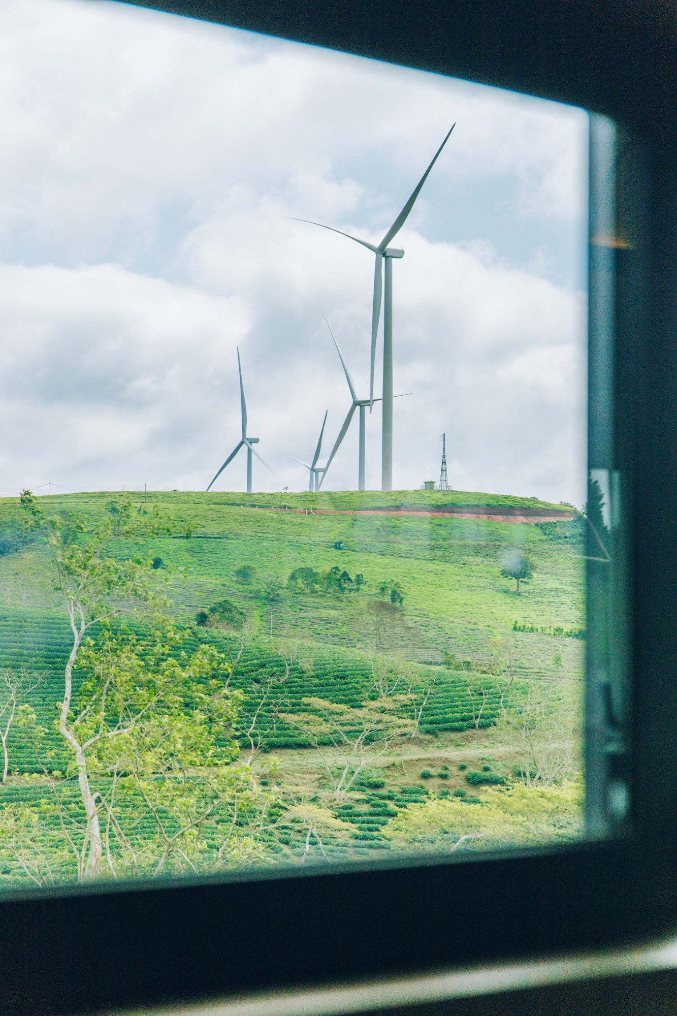 Nhiếp ảnh gia Nguyễn Trình, ở TP Đà Lạt, chia sẻ anh ấn tượng bởi cách phối màu thu hút của đoàn tàu, khi màu đỏ rực bắc ngang màu xanh lá cây của đồi chè, bên trên là nền trời trong xanh. Khung cảnh cũng khiến anh liên tưởng tới những đoàn tàu ở châu Âu. Hiện nay điểm đến chưa quá đông khách du lịch nên thuận tiện để chụp ảnh. Đi vào bên trong toa tàu cũng có thể chụp những bức ảnh nhìn ra khung cảnh cánh đồng điện gió.