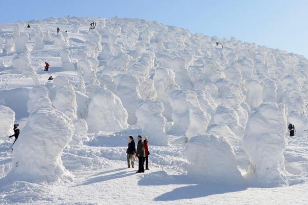 Tháng 1-3 hàng năm, núi Zao ở tỉnh Yamagata thu hút hàng nghìn du khách đến trượt tuyết, đi cáp treo ngắm cảnh khu rừng "quái vật tuyết".