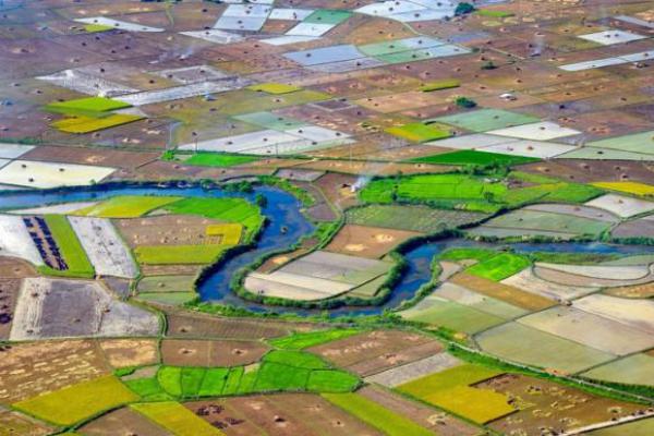 Khung cảnh quyến rũ với dòng sông chảy len lỏi bên cánh đồng lúa trải rộng bốn bề.