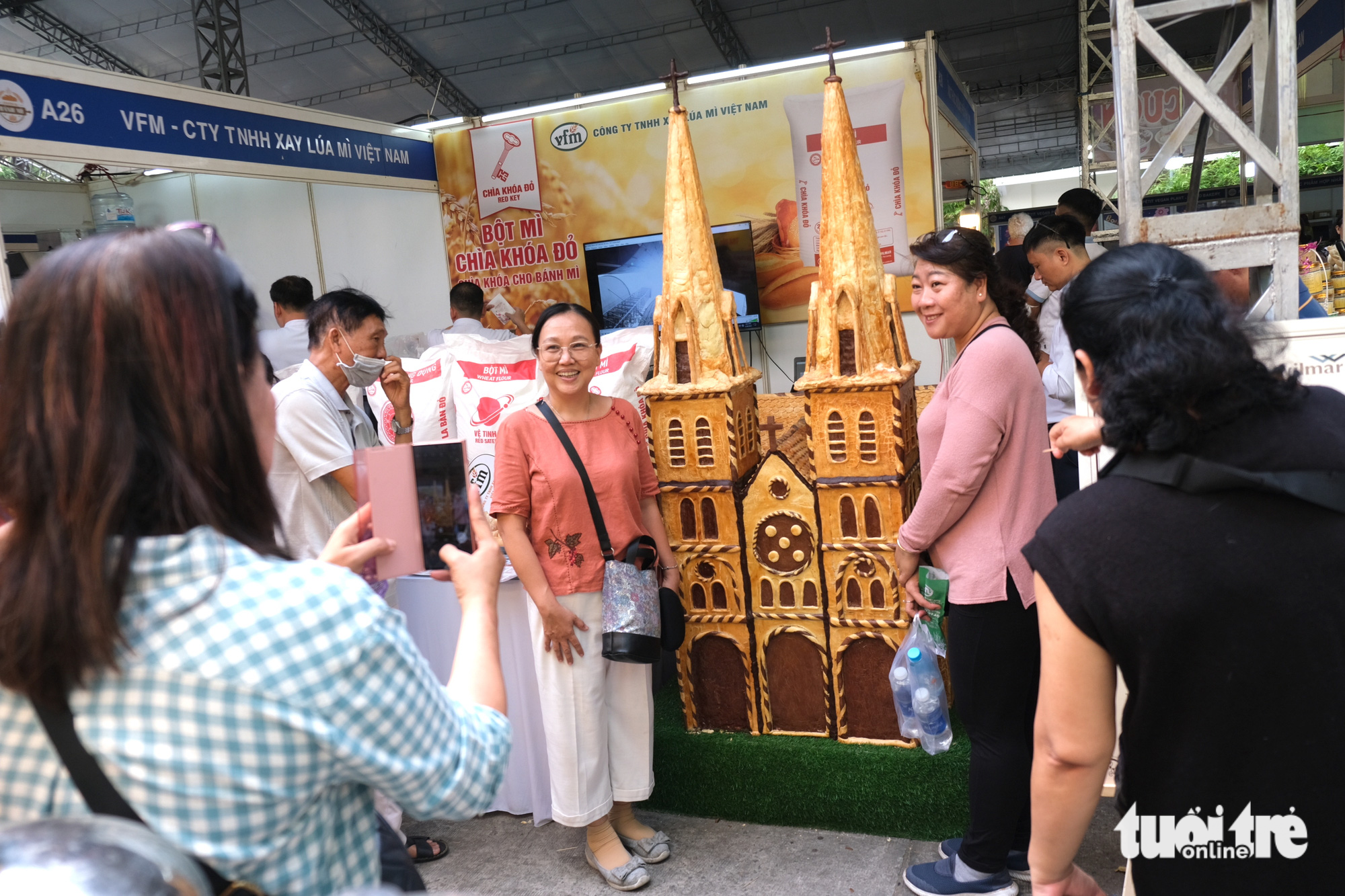 Người tham dự còn thỏa thích check-in nhận quà miễn phí, chụp ảnh với mô hình nhà thờ Đức Bà cao 1,89m được làm từ bánh mì.
