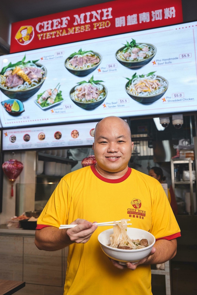 Minh và tiệm phở ở khu ẩm thực Bukit Batok.Tuy nhiên, xuất phát từ gợi ý của một người họ hàng sống ở Singapore, kèm theo khao khát được giới thiệu các món ăn Việt Nam ra thế giới, Minh quyết định rẽ ngang từ làm thuê sang làm chủ. Đầu tháng 6, tiệm phở mang phong vị miền Nam của anh có tên "Chef Minh Vietnamese Pho" đi vào hoạt động ở khu ẩm thực Bukit Batok, phía tây Singapore, với số vốn ban đầu hơn 300 triệu đồng.