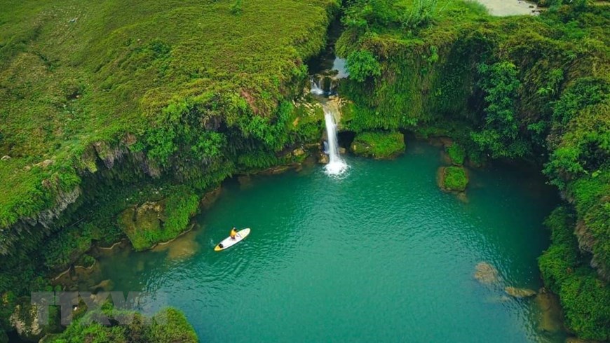 Thác Thoong Cót, xã Chí Viễn, huyện Trùng Khánh. (Ảnh: TTXVN phát)