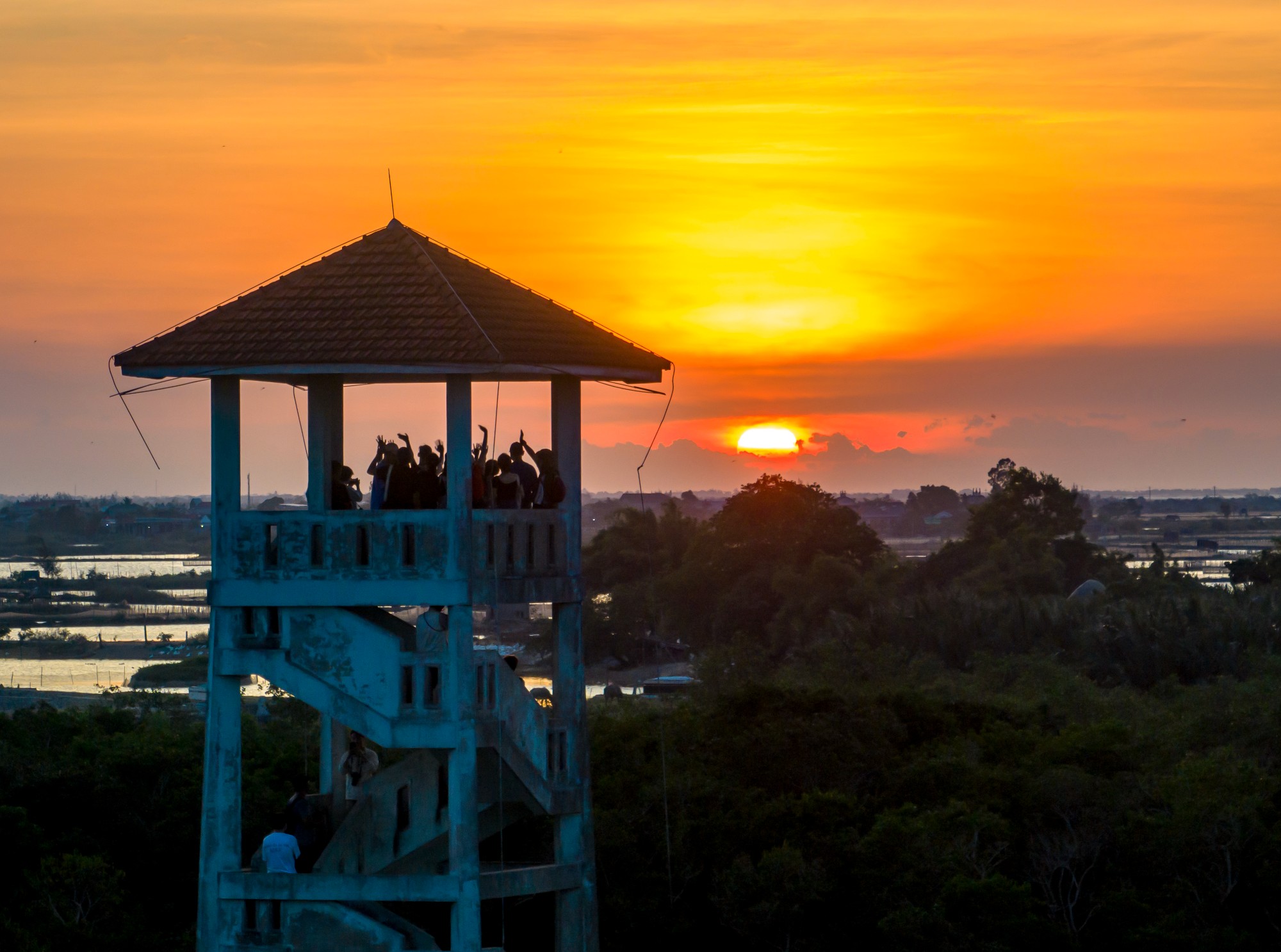 Ngoài vẻ đẹp nguyên sơ và bí ẩn, Rú Chá còn là một điểm đón hoàng hôn đầy choáng ngợp. Đứng trên đài quan sát giữa rừng, du khách sẽ được hít hà những ngọn gió vừa mát vừa trong lành, ngắm nhìn ánh hoàng hôn rực rỡ bao phủ lên toàn bộ khu rừng cũng như phá Tam Giang - Ảnh: HACHI