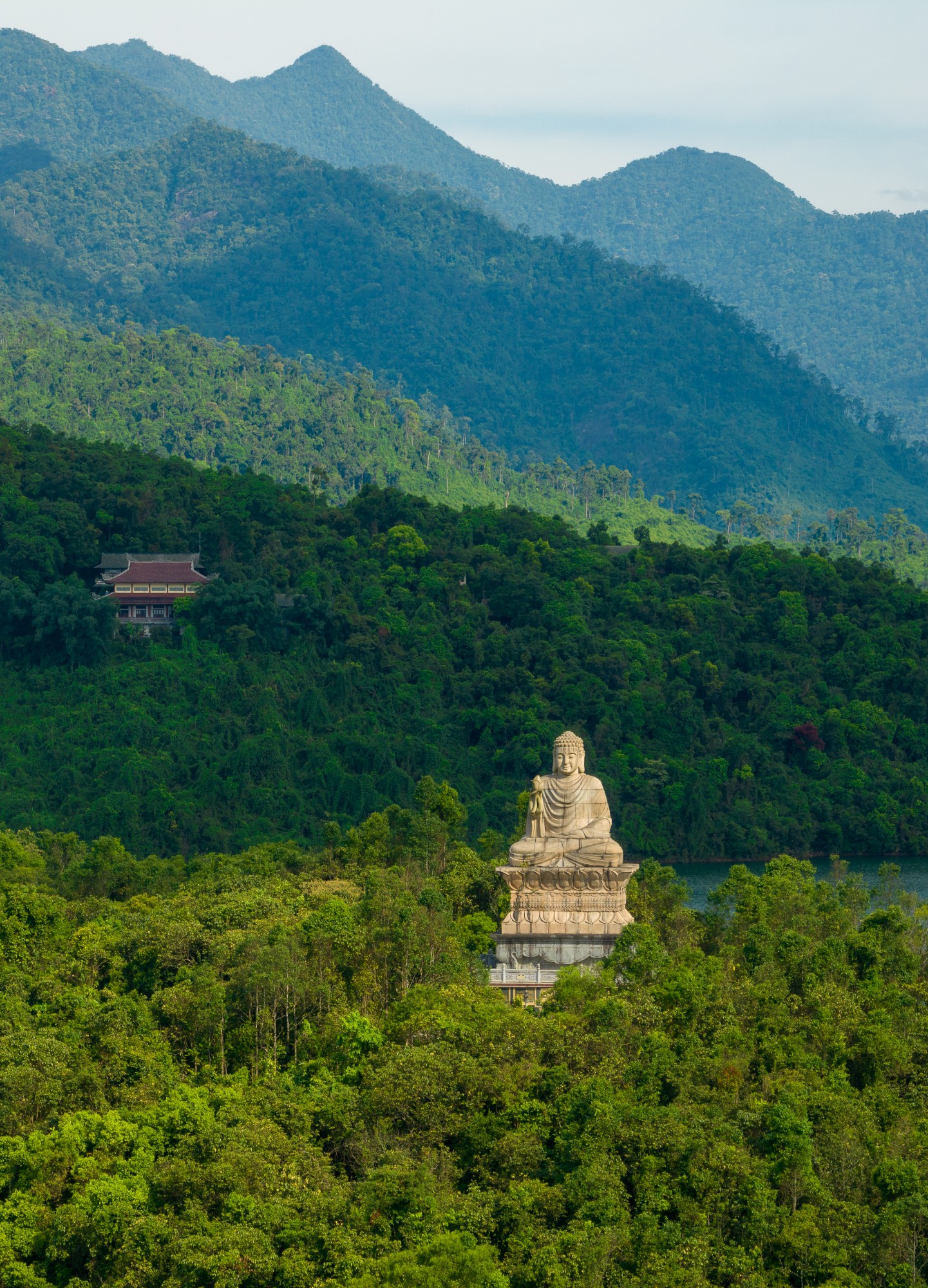 Thiền viện Trúc Lâm Bạch Mã được bao bọc bởi hồ Truồi, ngự trên ngọn núi Linh Sơn. Nơi đây khá hoang sơ và yên tĩnh, nếu có thời gian du khách có thể thong dong lễ Phật, ngắm cảnh sông nước, nghe tiếng chim hòa cùng tiếng mõ… - Ảnh: HACHI