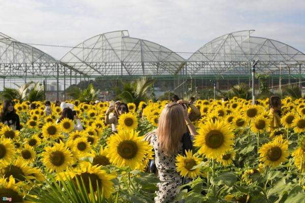 Tới khoảng 16h, lượng khách vẫn khá đông. Phải tới tầm 17h, vườn hoa hướng dương này mới "giảm nhiệt". Tuy nhiên, thời điểm này nắng đã tắt nên việc chụp hình cũng không khả thi.